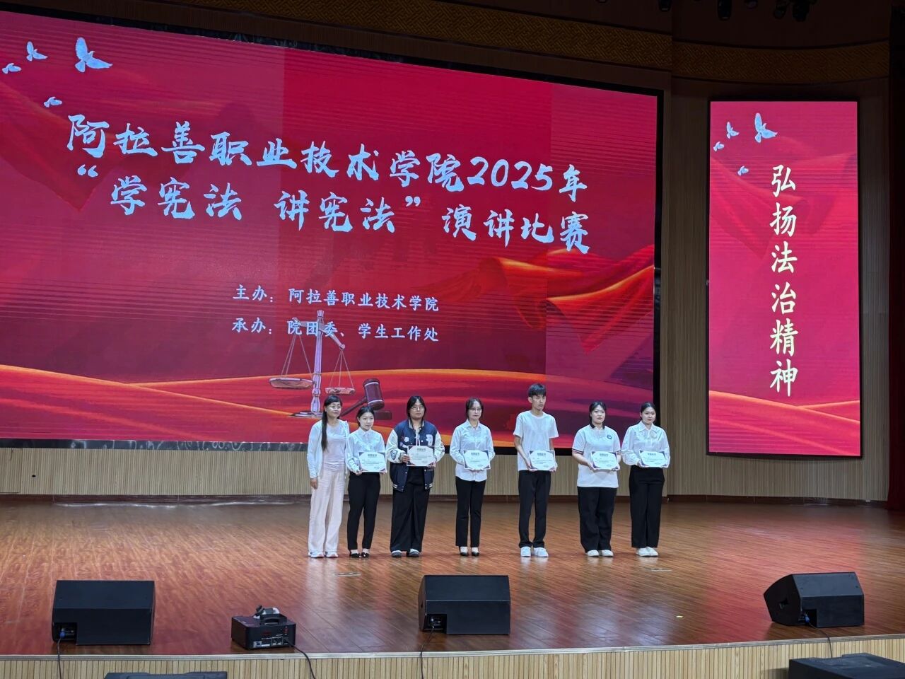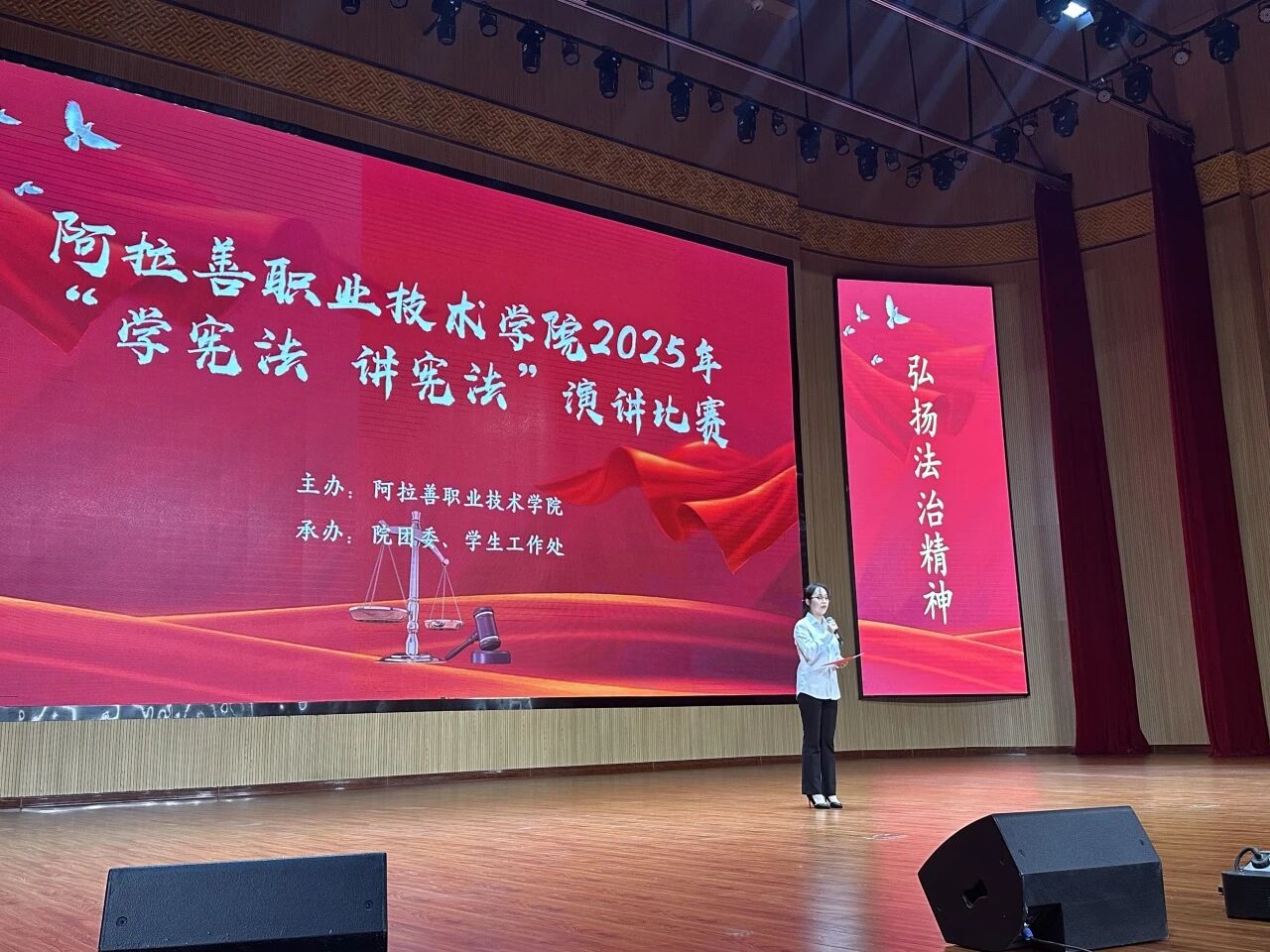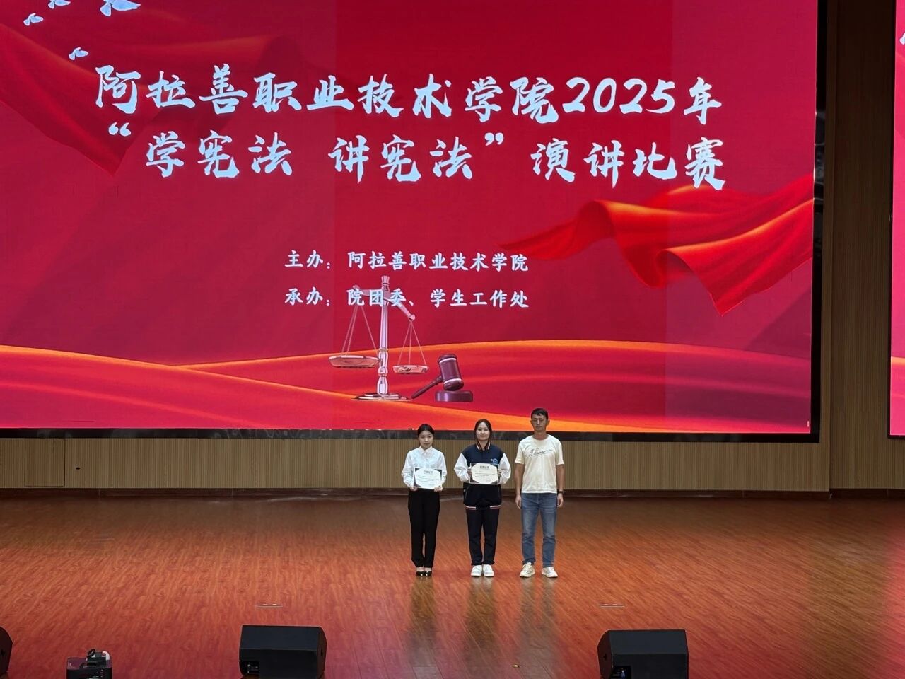 为深入学习贯彻习近平法治思想,全面落实习近平总书记关于青少年法治教育的重要指示精神,持续推进青少年宪法学习宣传教育走深走实,9月16日至17日,由院团委、学生工作处联合举办的2025年“学宪法 讲宪法”活动成功举办。本次活动共有17名选手参加演讲比赛,30名学生参与法治素养竞赛,100余名师生现场观赛。
